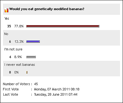 What about you? Would you eat GM bananas? Compare your answer to the results of our poll.